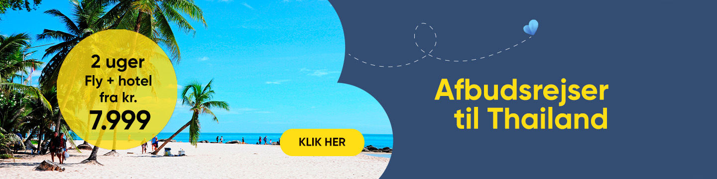 Med vores charterrejser til Thailand er næsten alt muligt, ligesom landet også giver alle muligheder. Vi har pakkerejser til Thailand til en god pris, vi har rundrejser i Thailand og leder du efter billige rejser til Thailand, så se på vores sider for afbudsrejser.